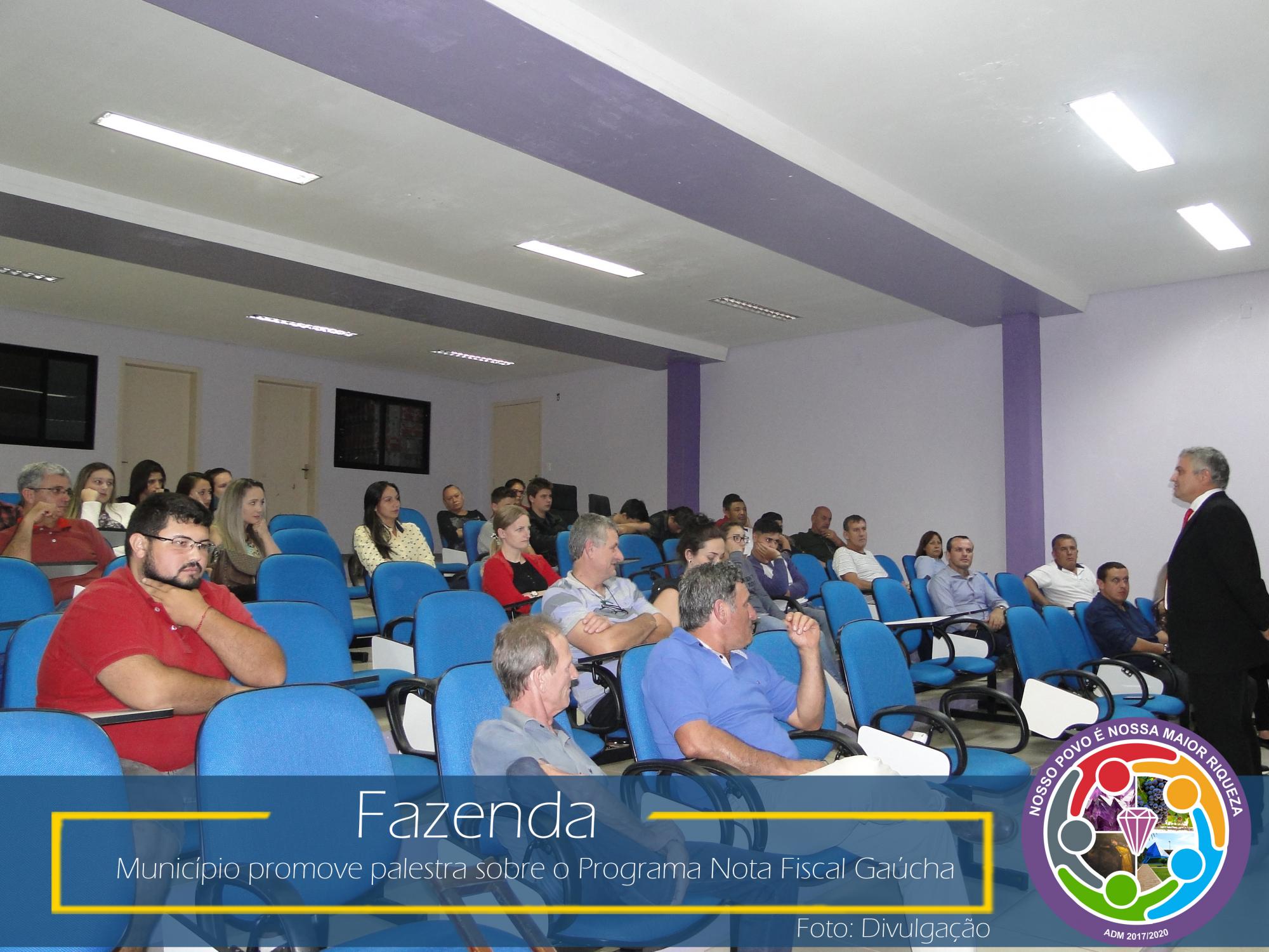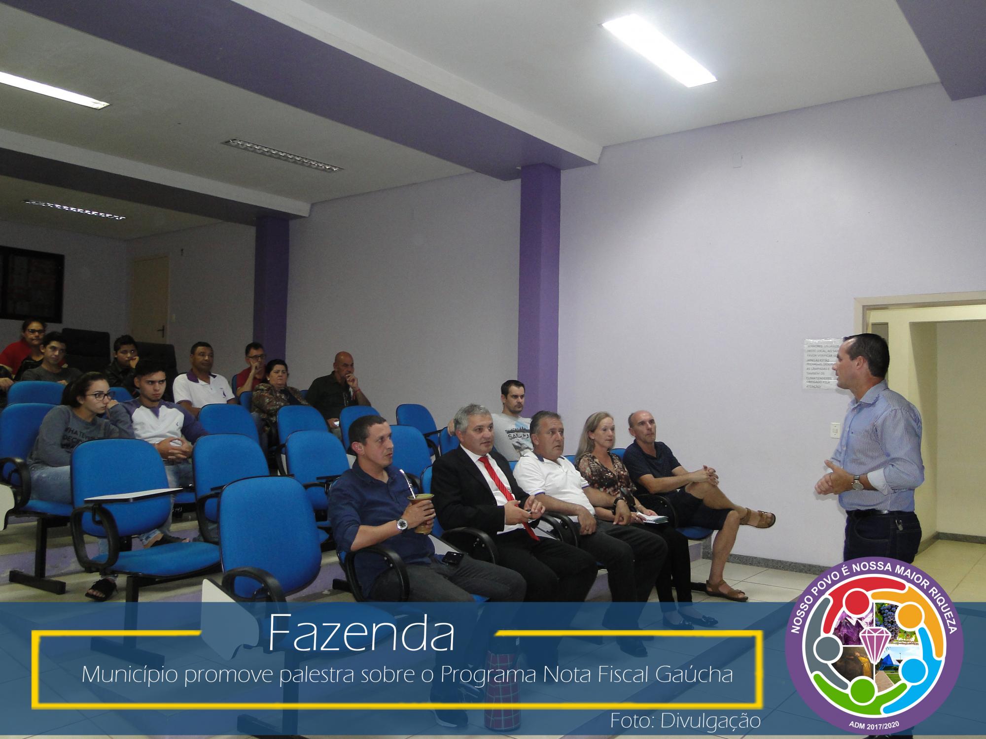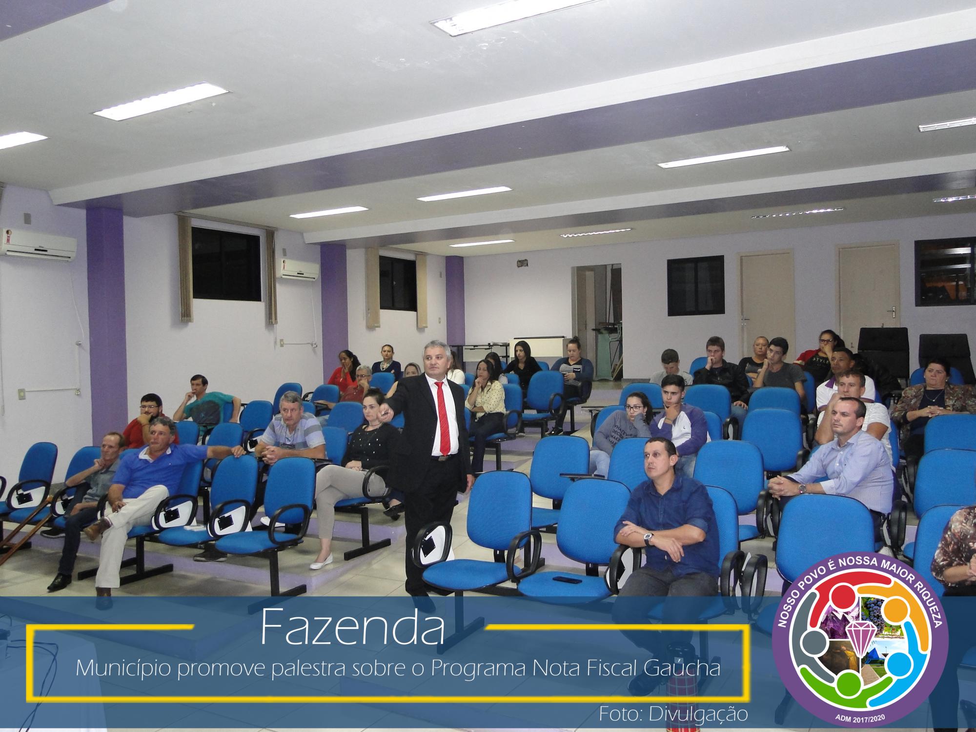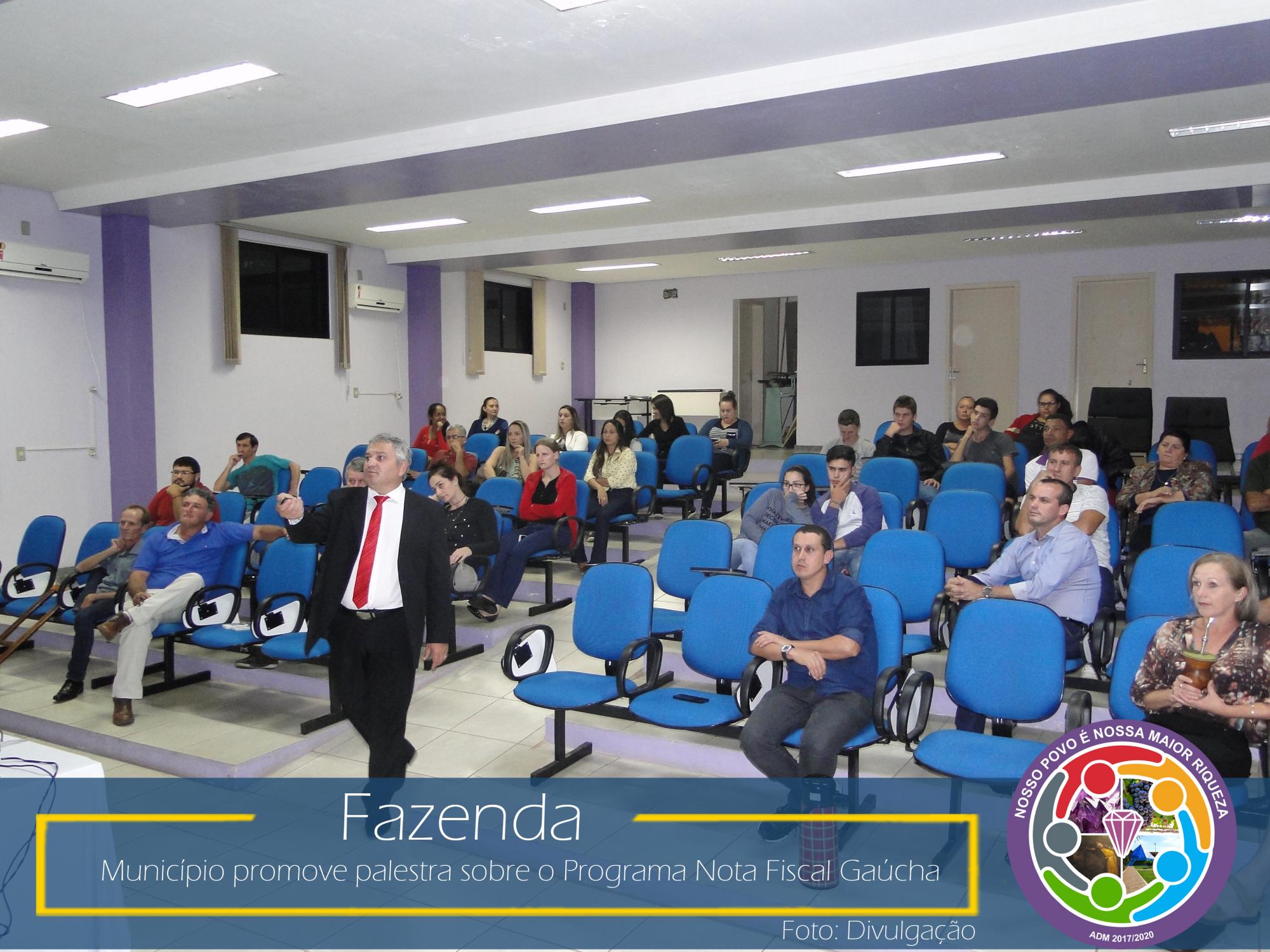 Com esse intuito, na última sexta-feira, dia 23 de março de 2018, no Auditório da Prefeitura Municipal, aconteceu uma palestra com o coordenador da área social da NFG, Adelar Vendruscolo, que abordou temas relevantes como: ICMS e sua forma de rateio entre os municípios, Programa Nota Fiscal Gaúcha e seu funcionamento: cadastro, sorteios municipais e estaduais, valores sorteados, valores repassados as entidades cadastradas no município, entre outros.