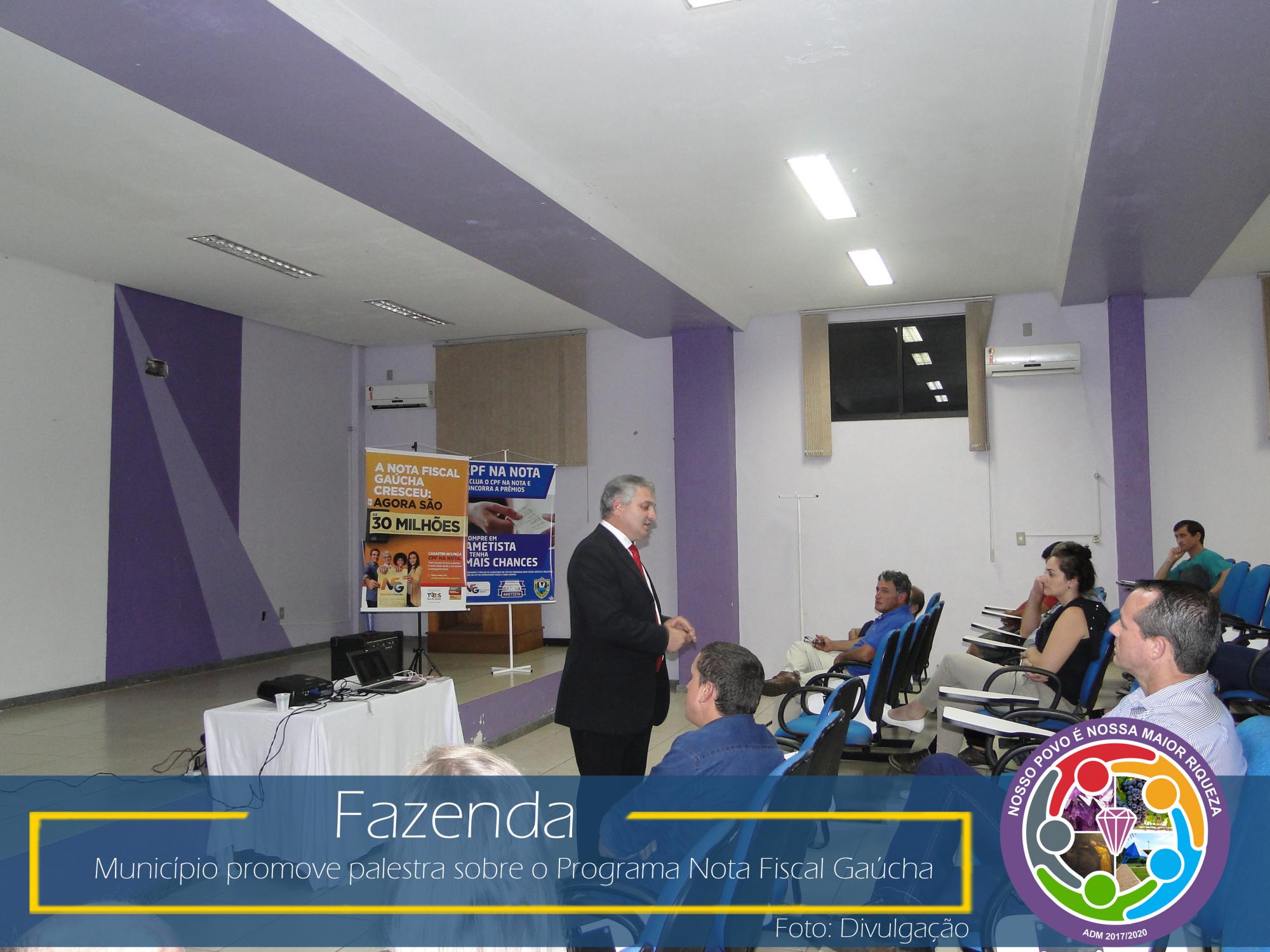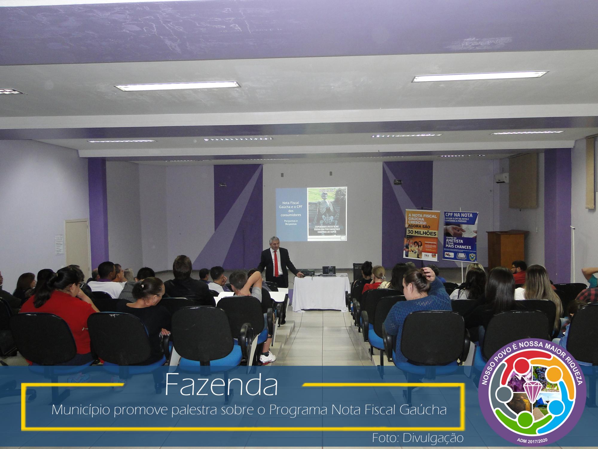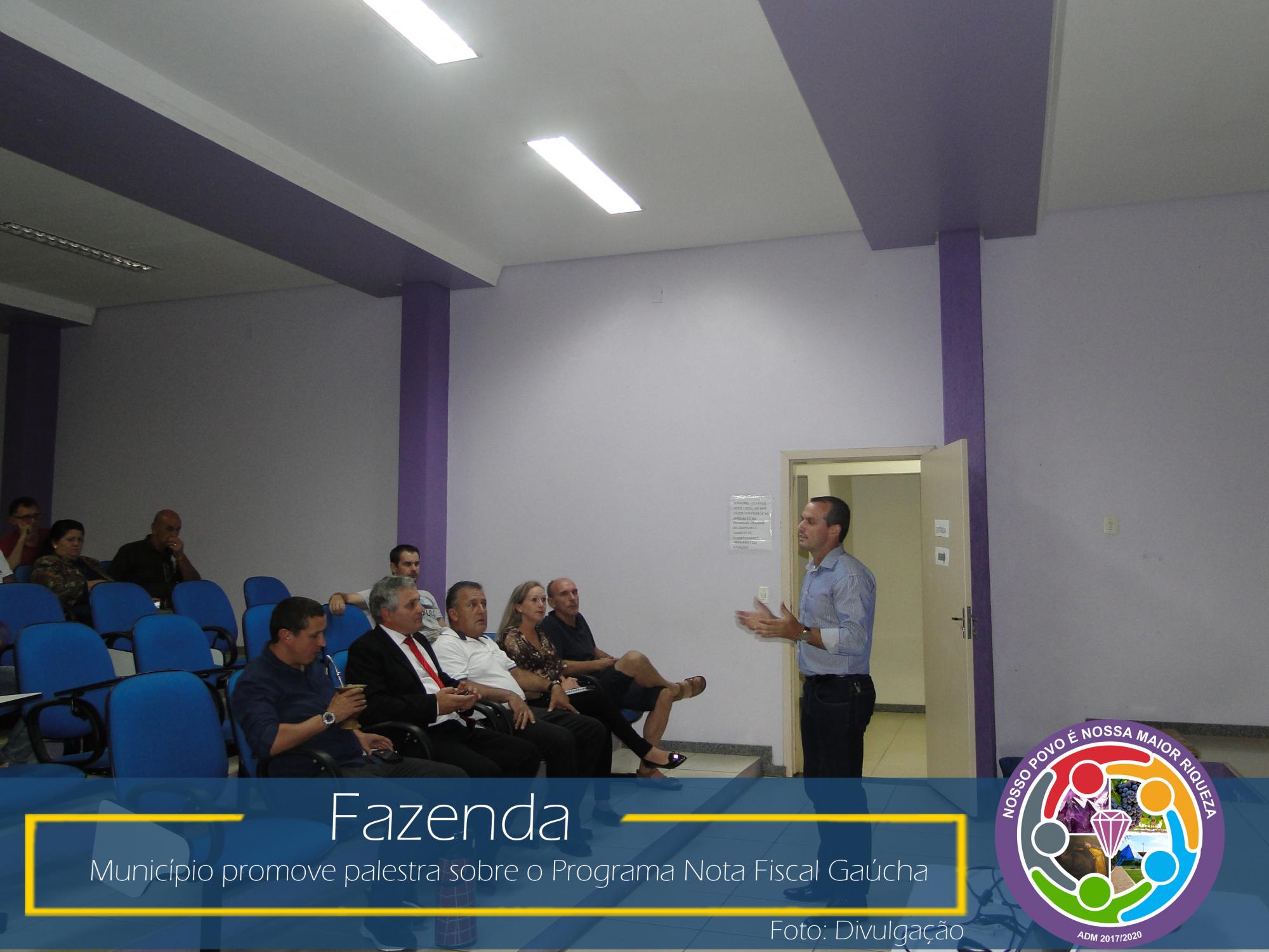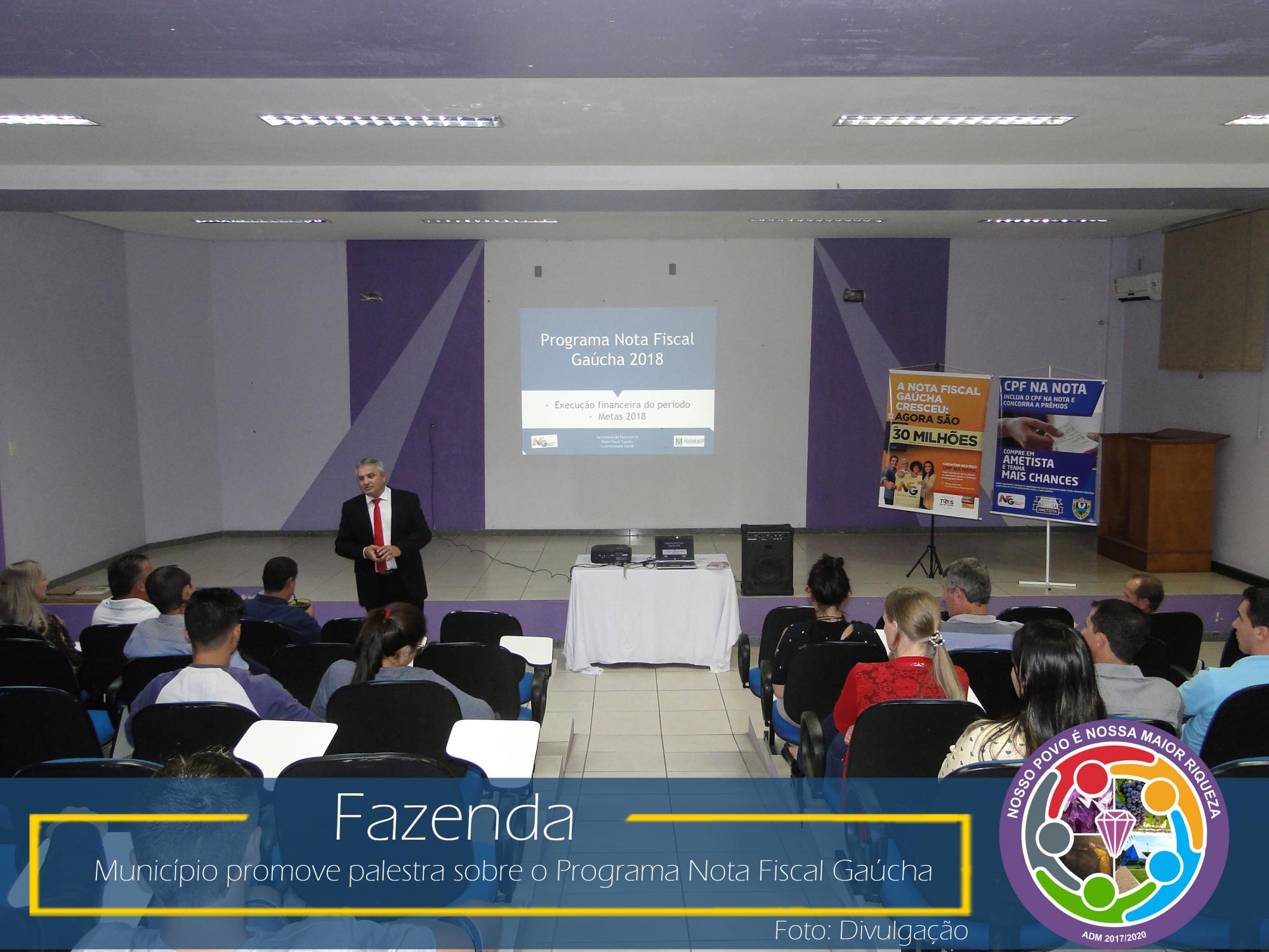 Com esse intuito, na última sexta-feira, dia 23 de março de 2018, no Auditório da Prefeitura Municipal, aconteceu uma palestra com o coordenador da área social da NFG, Adelar Vendruscolo, que abordou temas relevantes como: ICMS e sua forma de rateio entre os municípios, Programa Nota Fiscal Gaúcha e seu funcionamento: cadastro, sorteios municipais e estaduais, valores sorteados, valores repassados as entidades cadastradas no município, entre outros.